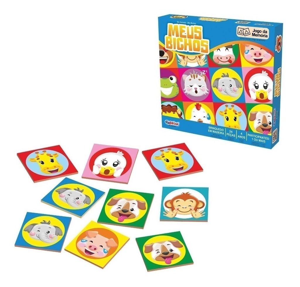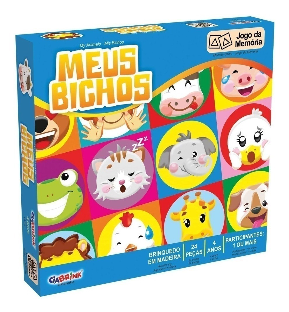 Jogo de memoria meus bichos, forma divertida de aprender os bichos, estão alegres a espera das crianças.